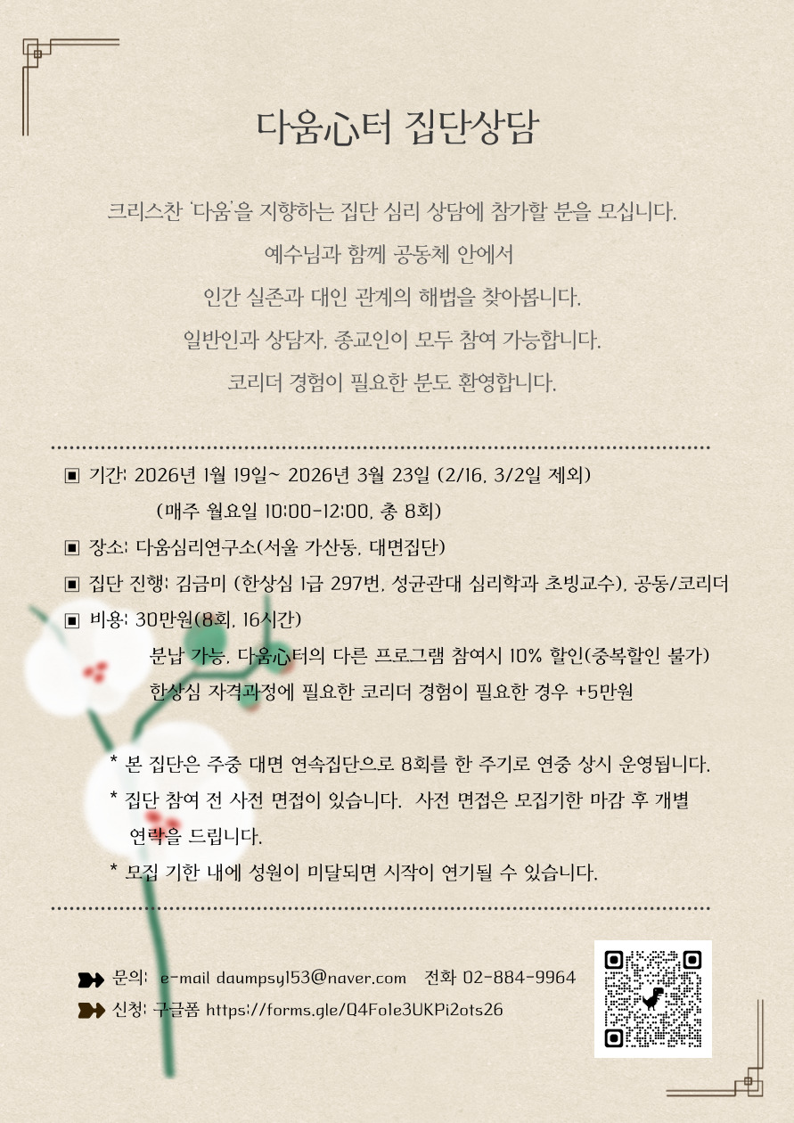 다움심터 주중 연속 집단상담 참가자 모집