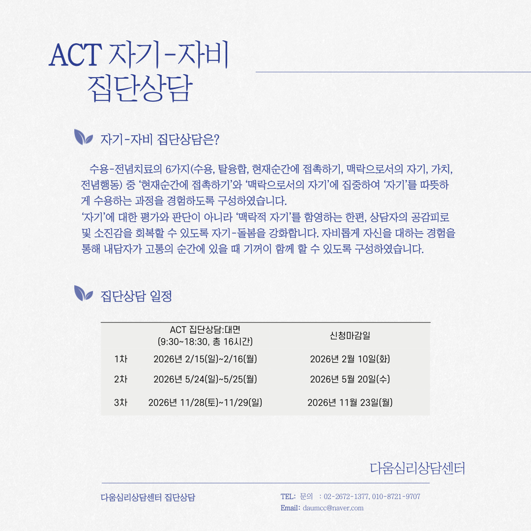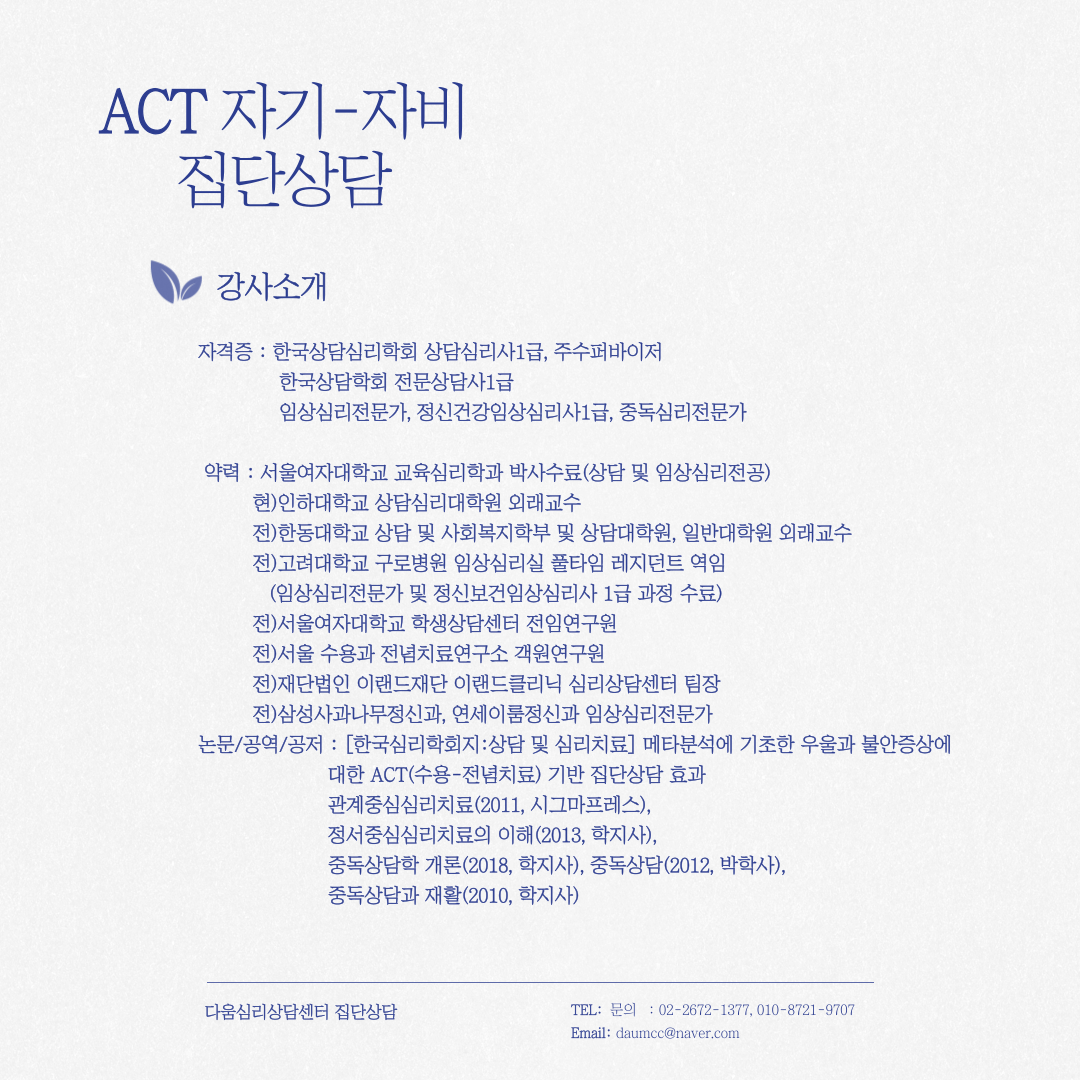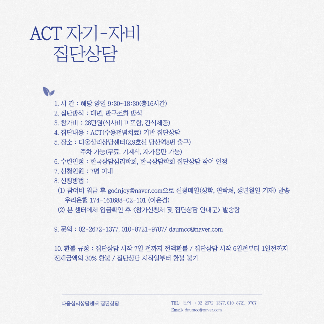 [다움심리상담센터] ACT 자기자비 대면 집단상담 16시간 양학회 인정