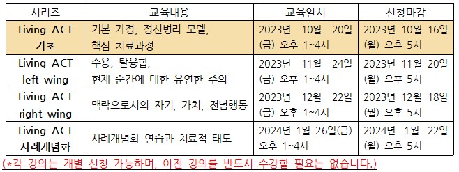 기존 심리치료들이 지나치게 문제와 증상에만 초점을 맞추는 것에 비해, 수용전념치료는 내담자가 진정으로 살고 싶은 삶의 방향인 ‘가치’에 초점을 맞추고 있기 때문에 ‘Living ACT’라 명명해 보았습니다.
