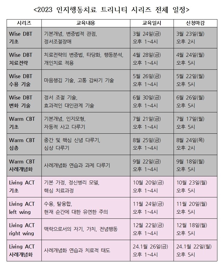 그러므로 체계적 이론과 풍부한 임상경험을 바탕으로 재미있고 이해하기 쉽게 임상 실제에 활용 가능한 치료를 배울 수 있을 것으로 기대됩니다.