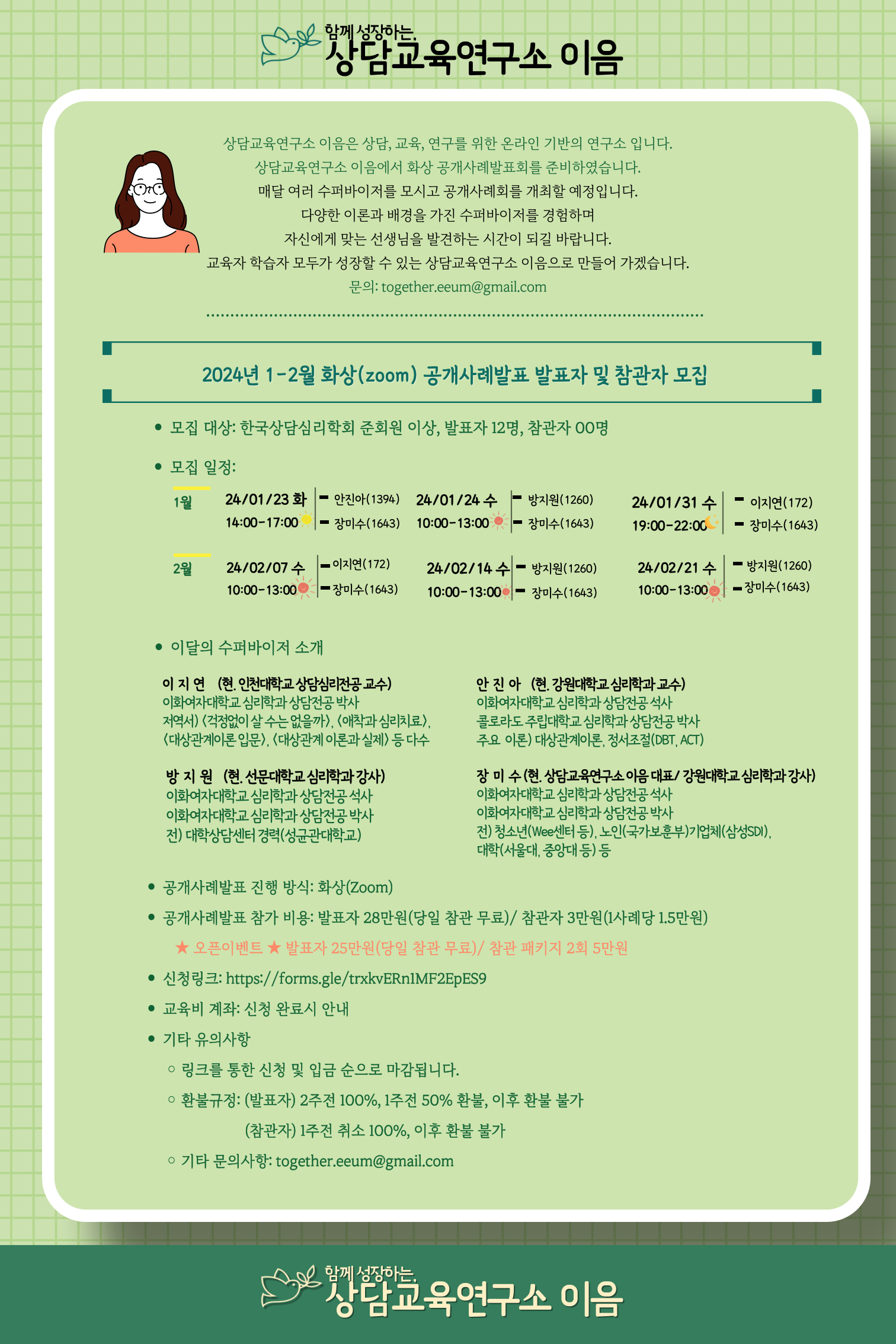 이음에서는 매달 좋은 수퍼바이저를 모시고 화상 공개사례발표회를 운영할 예정이오니