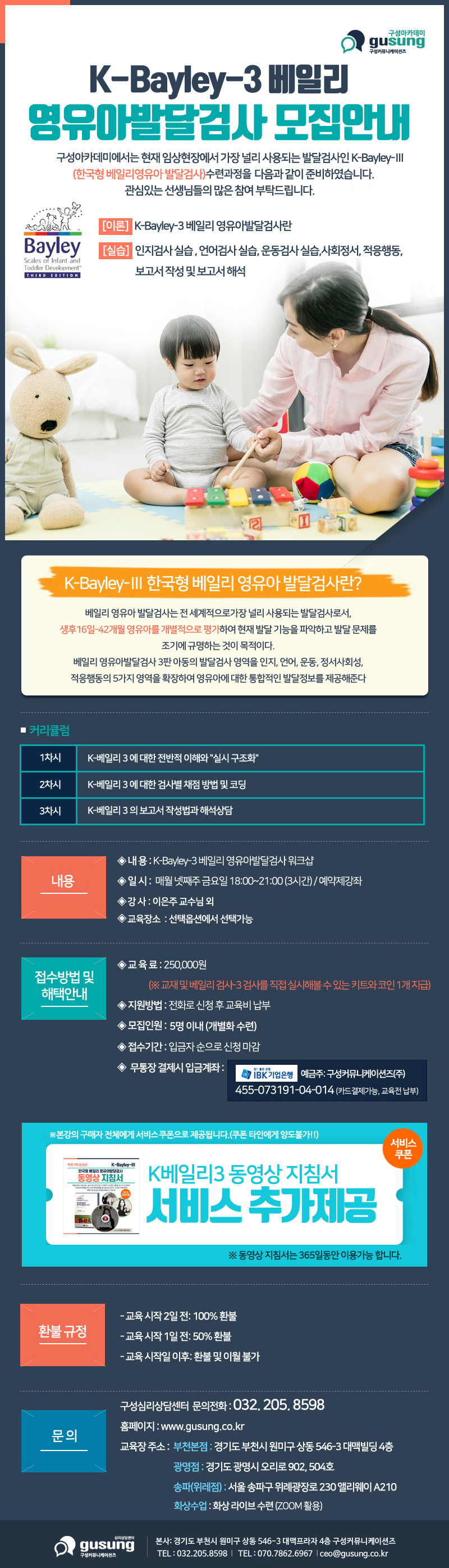 [구성아카데미] K-Bayley-Ⅲ 베일리 영유아 발달검사 수련(대면)