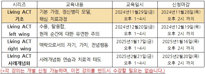 인지행동치료 트리니티 시리즈: ‘Living ACT’ 워크숍(화상강의)