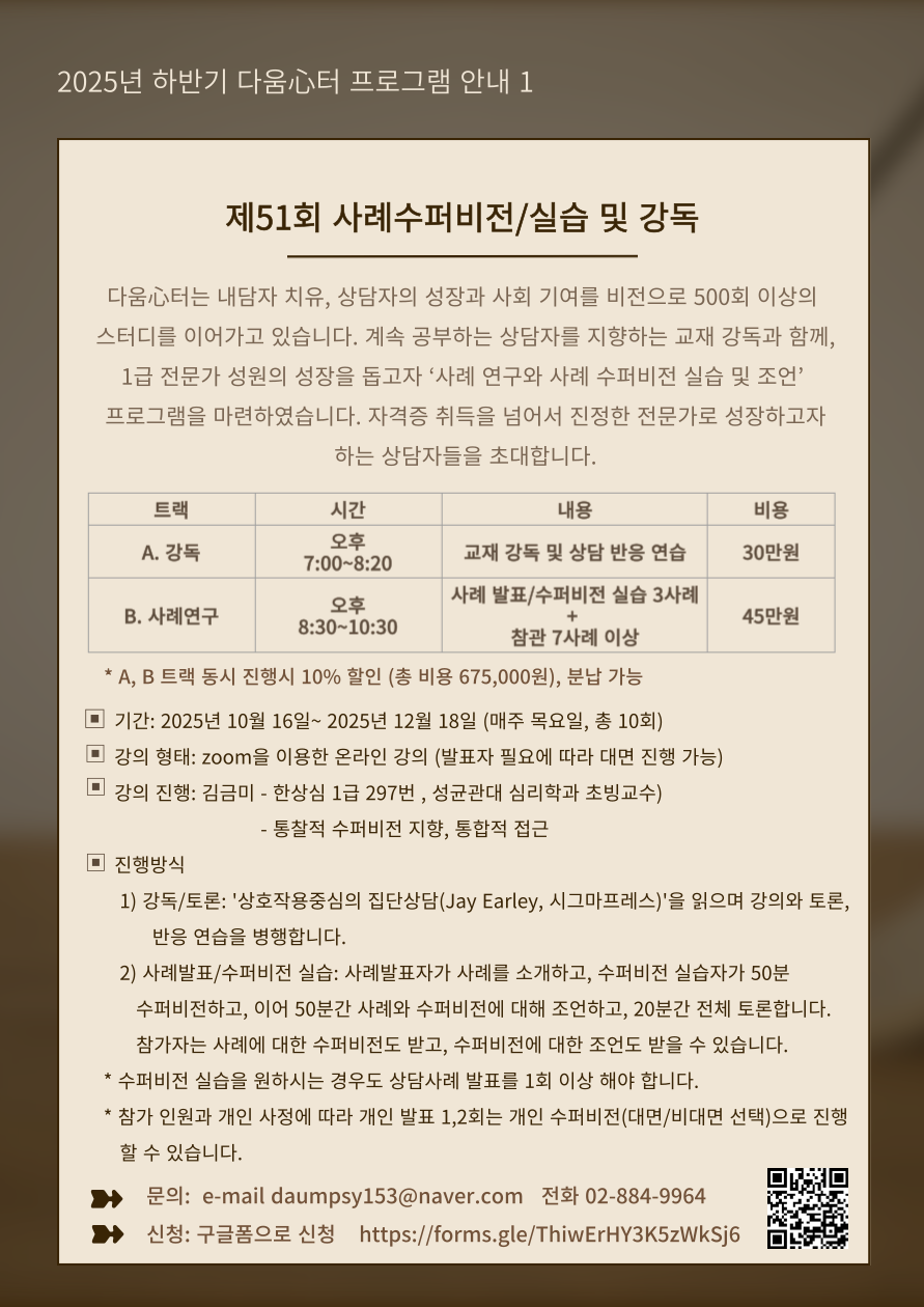 제51회 다움심터 수퍼비전/수퍼비전 실습 및 강독