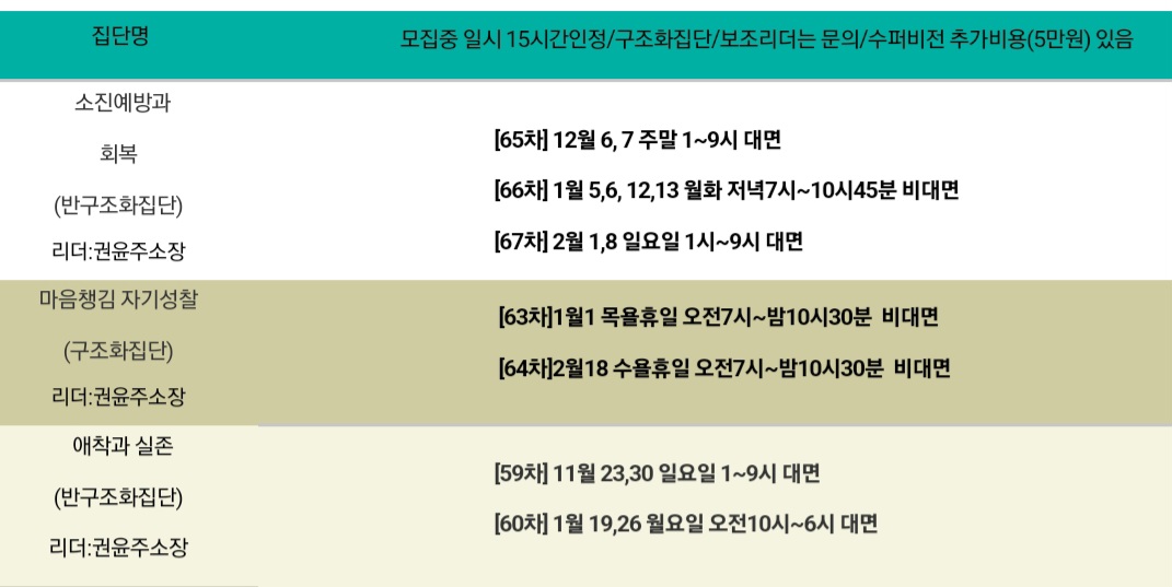 ##집단원25만원(학회추가비용없음),보조리더30만원(수퍼비전 추가비용5만원-총35만원) 신청:010-2713-0365 문자나 카톡채널 채팅