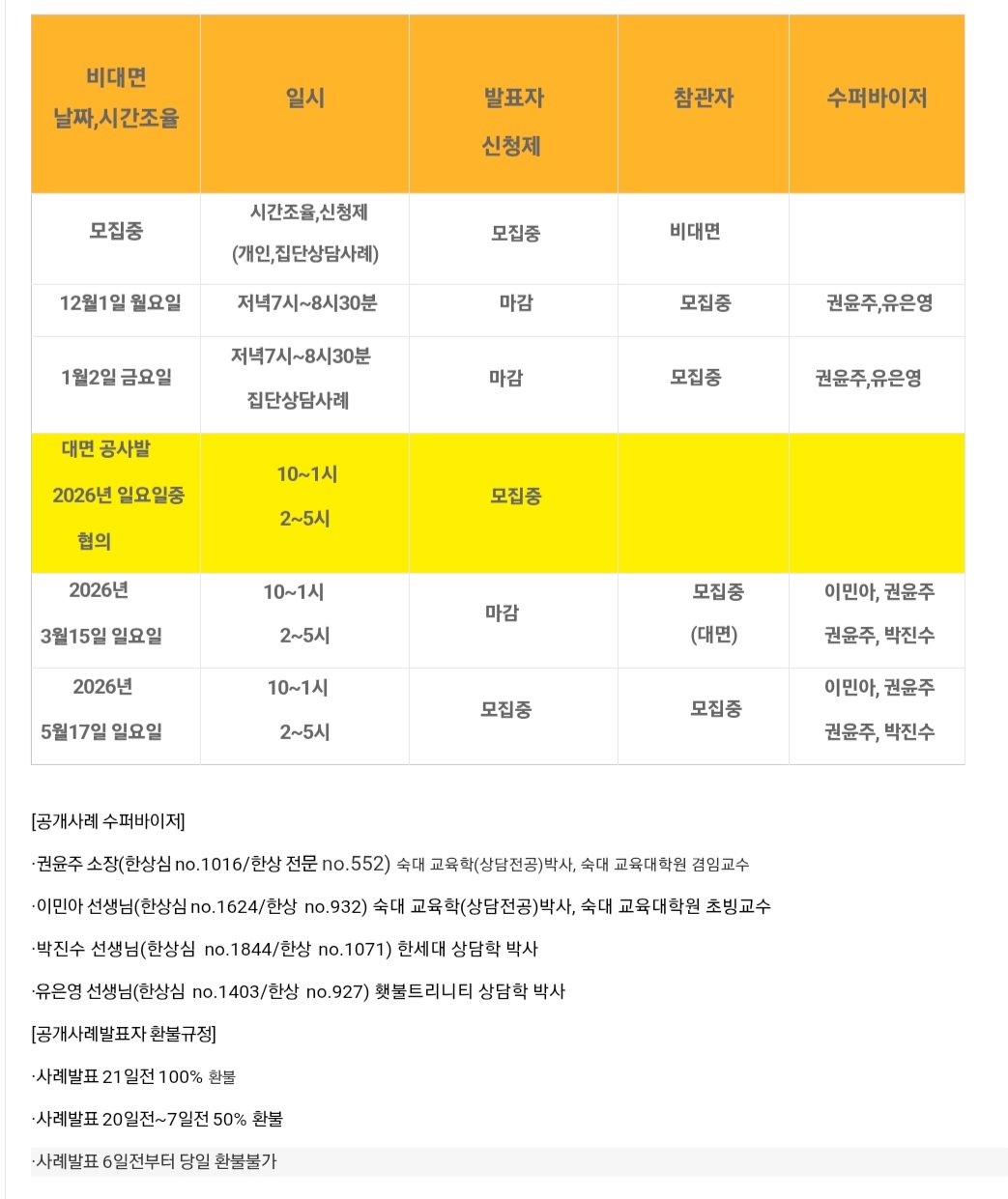 공개사례발표(발표자와 날짜, 시간 협의 후 진행)/한국상담학회 교육연수기관