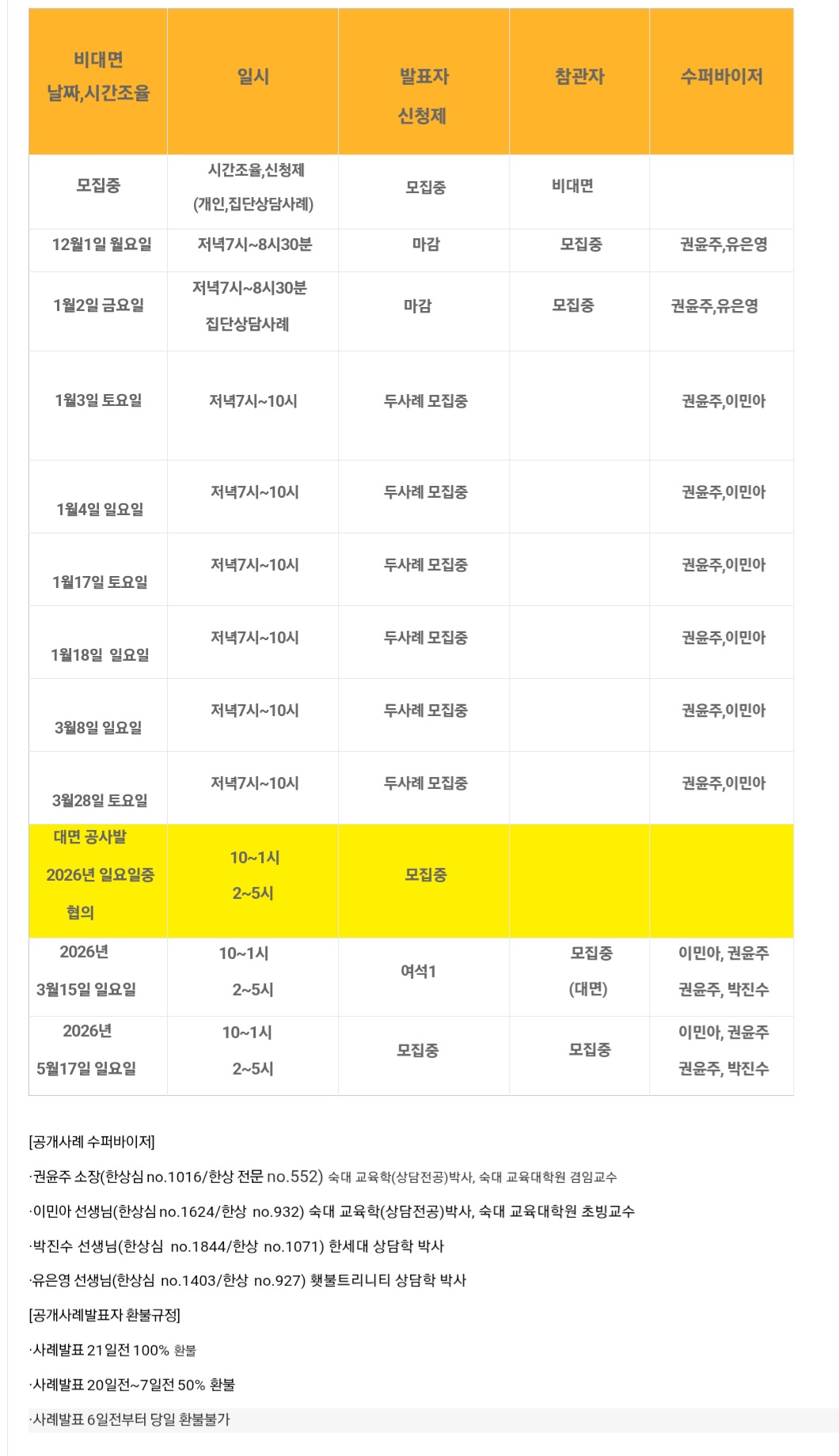 ■■양학회 공개사례발표■■집단리더패키지 상시모집(1년간 공개참관무료혜택)/공개사례발표 상시모집(집단/개인사례,날짜시간조율)발표자,참관자모집중(양학회 인정)