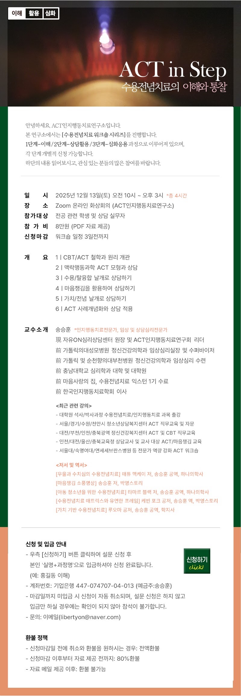 12월 13일(토), ACT in Step: 수용전념치료의 이해와 통찰
