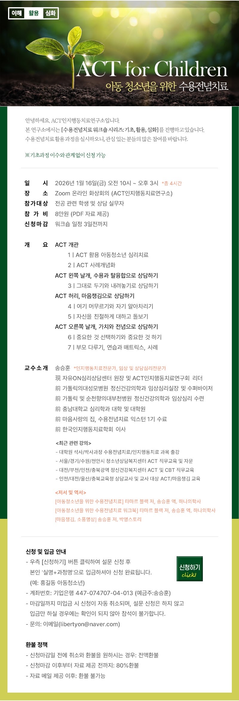 1월 16일(금), 아동청소년을 위한 수용전념치료