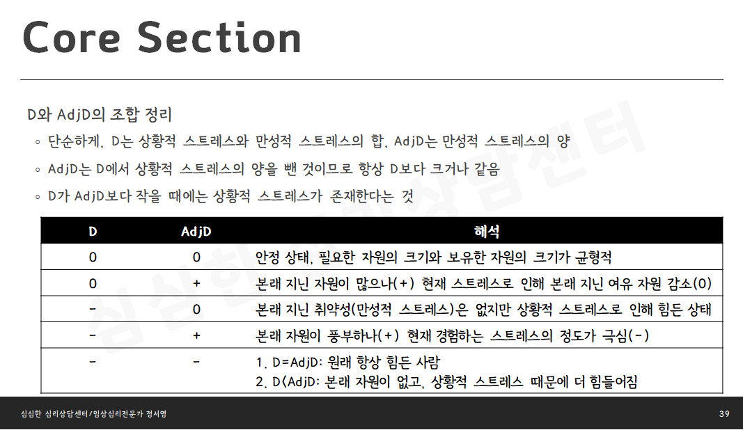 | 목표 | 종합체계 기준으로 로샤 지표들의 해석적 함의와 원리 이해 |